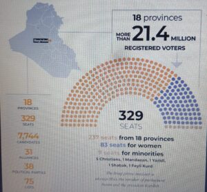 शिया नेतृत्व वाले समन्वय ढांचे ने कहा कि उसने औपचारिक रूप से खुद को सबसे बड़े संसदीय ब्लॉक के रूप में नामित किया है, जिसमें उसके सभी शिया घटक दल एक साथ हैं तीन प्रमुख संप्रदायों – शिया, सुन्नी और कुर्द – का 18 प्रांतों में अपना प्रभुत्व होने के कारण, कोई भी एक पार्टी अकेले सरकार नहीं बना सकती। मतदान का स्वरूप भी पूरी तरह से सांप्रदायिक है क्योंकि प्रत्येक संप्रदाय अपने ही गुट के उम्मीदवारों का समर्थन करता है। इस वर्ष की शुरुआत में अपनी इराक यात्रा के दौरान, मैंने देखा कि इराकी समाज सांप्रदायिक आधार पर बुरी तरह विभाजित है, जो सद्दाम हुसैन के सत्ता से हटने का परिणाम प्रतीत होता है।