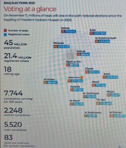 एम हसन लिखते हैं कि तीन प्रमुख संप्रदायों – शिया, सुन्नी और कुर्द – के 18 प्रांतों में अपना प्रभुत्व होने के कारण, कोई भी एक पार्टी अकेले सरकार नहीं बना सकती। मतदान का पैटर्न भी पूरी तरह से सांप्रदायिक है क्योंकि प्रत्येक संप्रदाय अपने ही गुट के उम्मीदवारों का समर्थन करता है। इस साल की शुरुआत में अपनी इराक यात्रा के दौरान, मैंने देखा कि इराकी समाज सांप्रदायिक आधार पर बुरी तरह विभाजित है, जो सद्दाम हुसैन के सत्ता से हटने का नतीजा लग रहा था।